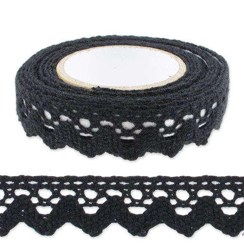 Puntilla autoadhesiva de algodón en color negro.