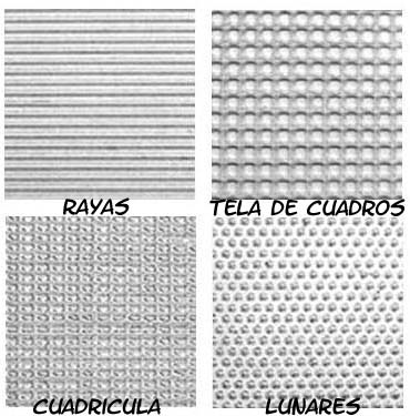 El set contiene 4 hojas de textura: rayas, tela de cuadros, cuadrícula y lunares.