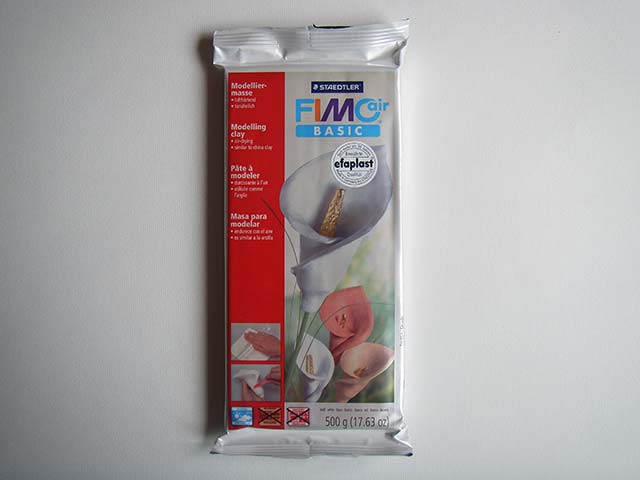 Durante el secado se evapora el agua que contiene la arcilla, por lo que reduce alrededor de un 7%. El material seca por completo en pocos días. El tiempo varía en función del tamaño de la pieza y del espesor de la capa de Fimo Air Basic que se haya utilizado.