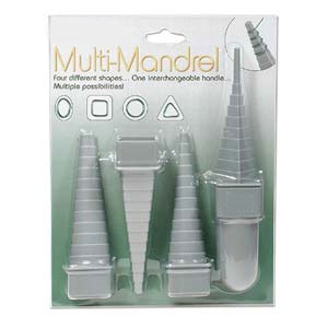 Contiene 4 mandriles de diferentes formas y tamaños: cuadrado, triangular, circular y ovalado.