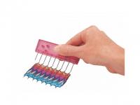 Uso: Arrastra el peine a través de la arcilla polimérica previamente acondicionada y lisa (sin cocer) para crear textura, vuelve a alisar para crear el efecto marmolado. También puedes puntear con esta herramienta la arcilla para crear una textura. Además puede usarse sobre Friendly Plastic ablandado para mezclar colores y modelos. Otra de sus posibilidades es mezclar arcilla polimérica líquida con tintas, polvos metálicos, pintura espesa, etc con ayuda de este peine para crear diferentes efectos.