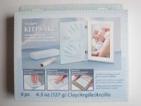 Uso: Estira la arcilla dentro de uno de los lados del marco con ayuda del rodillo. Apoya la mano del niño, limpia y seca, sobre la arcilla estirada y presiona. Personaliza el portaretratos grabando en la arcilla el nombre, la edad y la fecha con la herramienta para modelar. Hornea en un horno casero para que endurezca la arcilla.