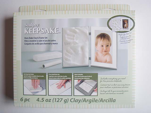 Uso: Estira la arcilla dentro de uno de los lados del marco con ayuda del rodillo. Apoya la mano del niño, limpia y seca, sobre la arcilla estirada y presiona. Personaliza el portaretratos grabando en la arcilla el nombre, la edad y la fecha con la herramienta para modelar. Hornea en un horno casero para que endurezca la arcilla.