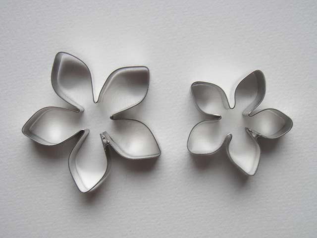 Set de 2 cortadores con forma de violeta, con 5 pétalos puntiagudos.