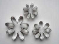 Set de 3 cortadores con forma de margarita de 8 pétalos, en tres tamaños.