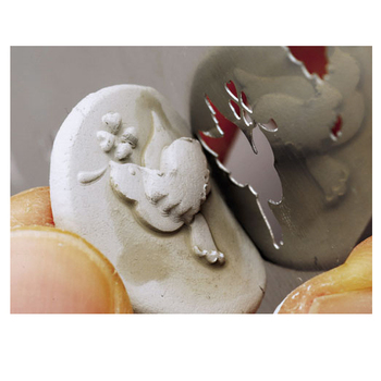 Esta plantilla es ideal para añadir un detalle en tres dimensiones a tus creaciones. Se puede utilizar con arcilla de metal o con arcilla polimérica. Además las formas de mariposa y paloma de la paz permiten crear dos niveles de profundidad, utilizando primero la forma con el número 1, y posteriormente la forma con el número 2.