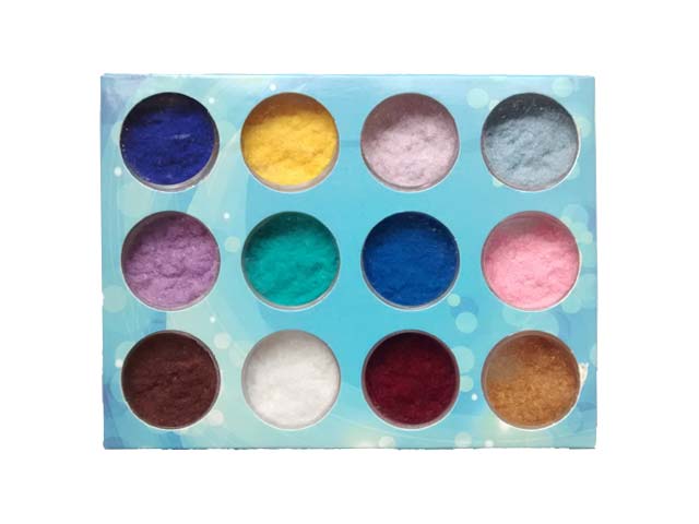 Surtido de 12 colores de polvo de terciopelo para conseguir un acabado suave y aterciopelado en la arcilla polimérica.