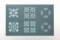 Plantilla adhesiva de plástico 10x15cm con cuadrados victorianos grandes y pequeños. Se puede utilizar varias veces.