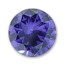 Gema sintética redonda de color púrpura.